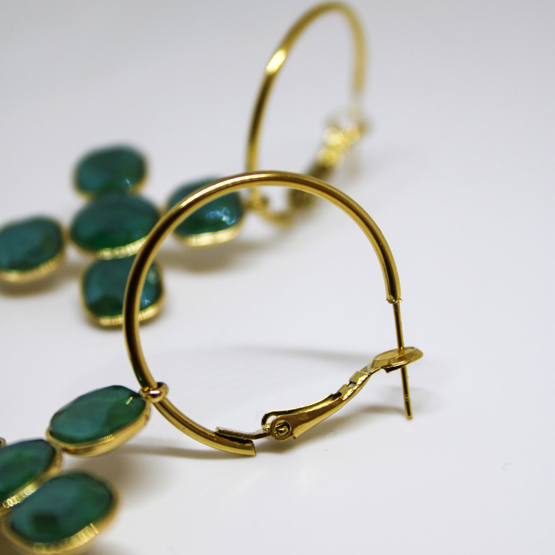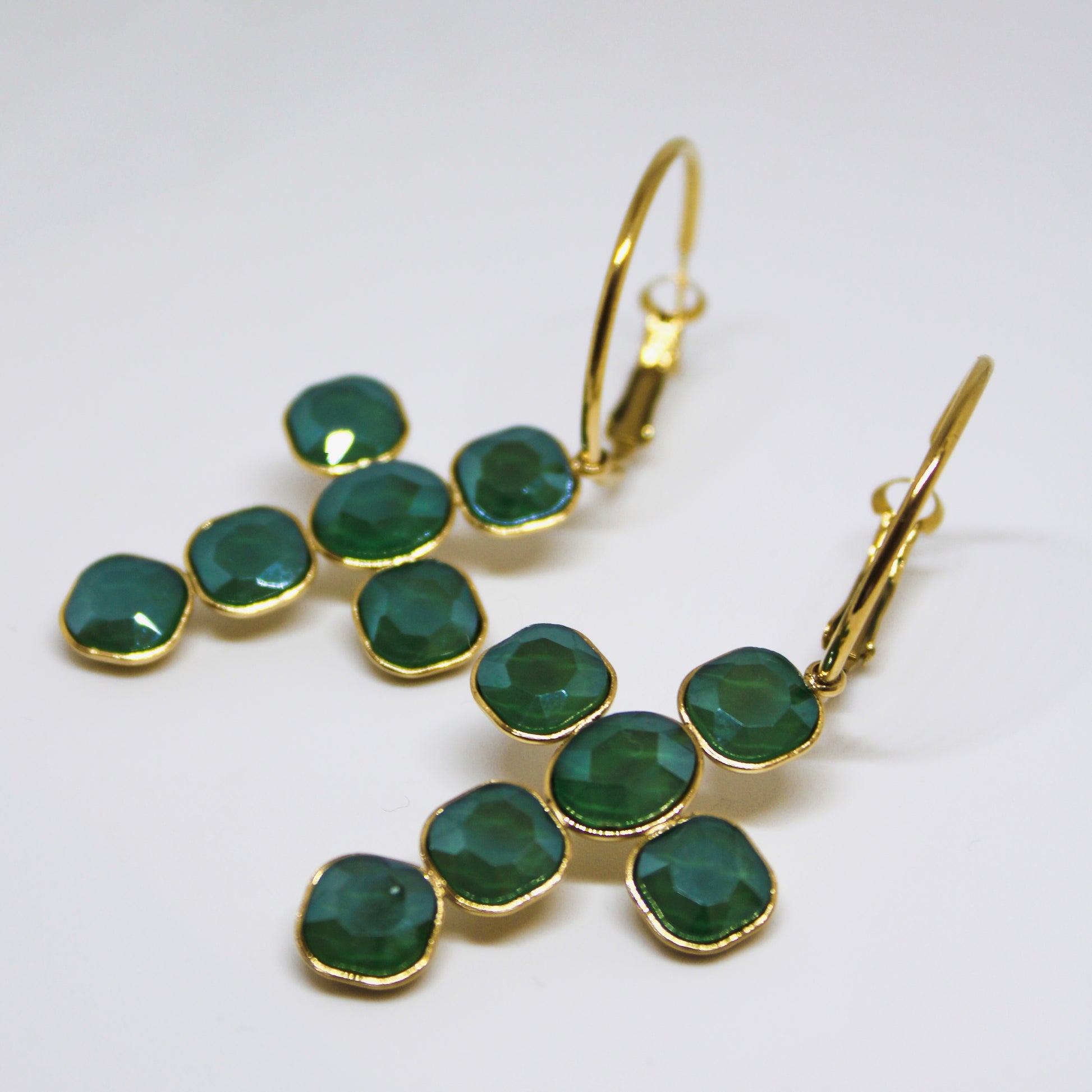 Pendientes de acero con cruz compuesta de perlas verdes